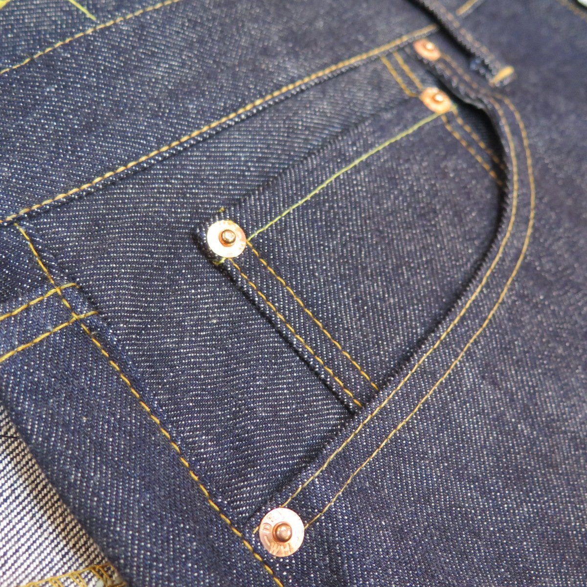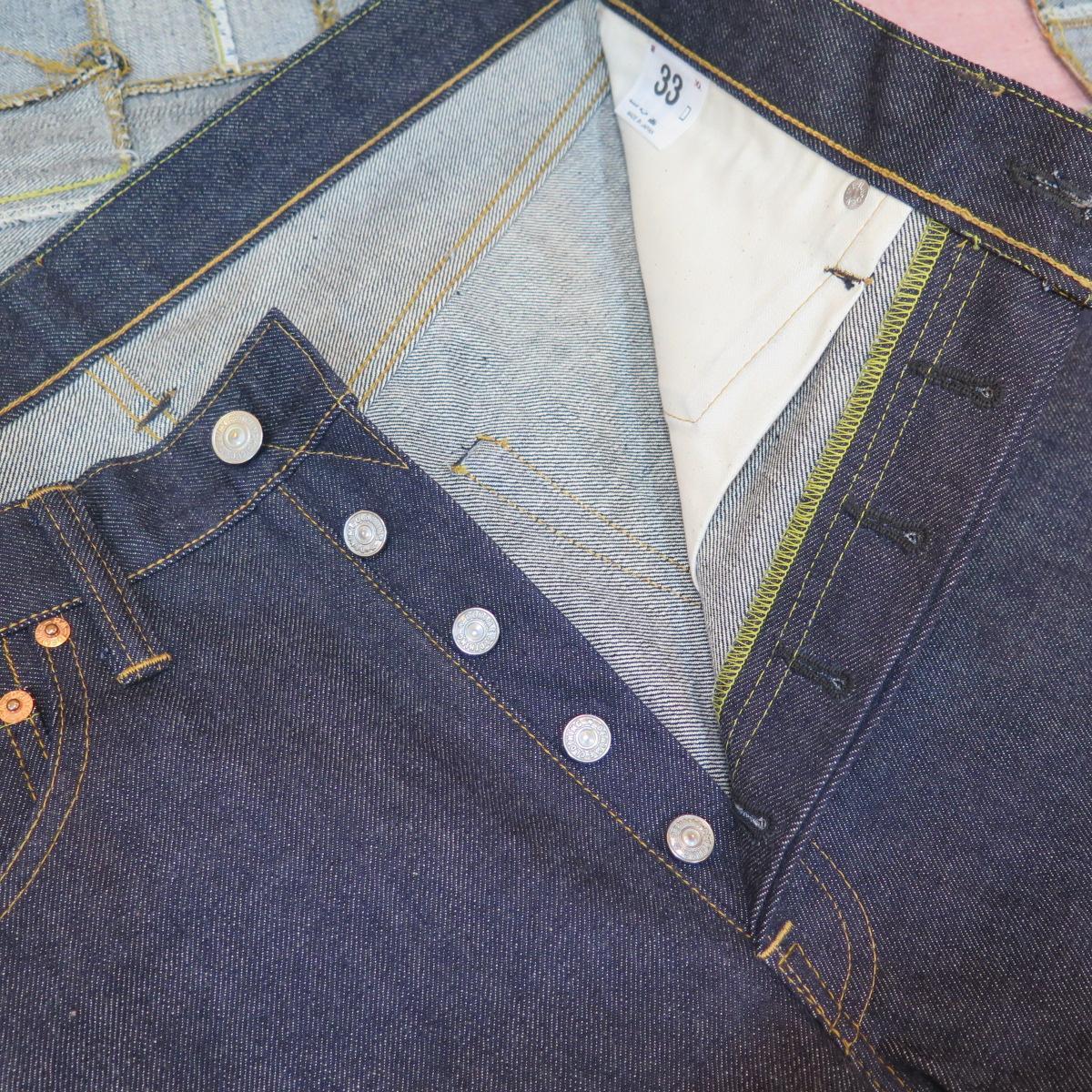 DENIMEらしい紙タグや縫製糸の色使い、ピスネームやボタンもすべて創業時を再現するべくウエアハウスが企画生産しました。