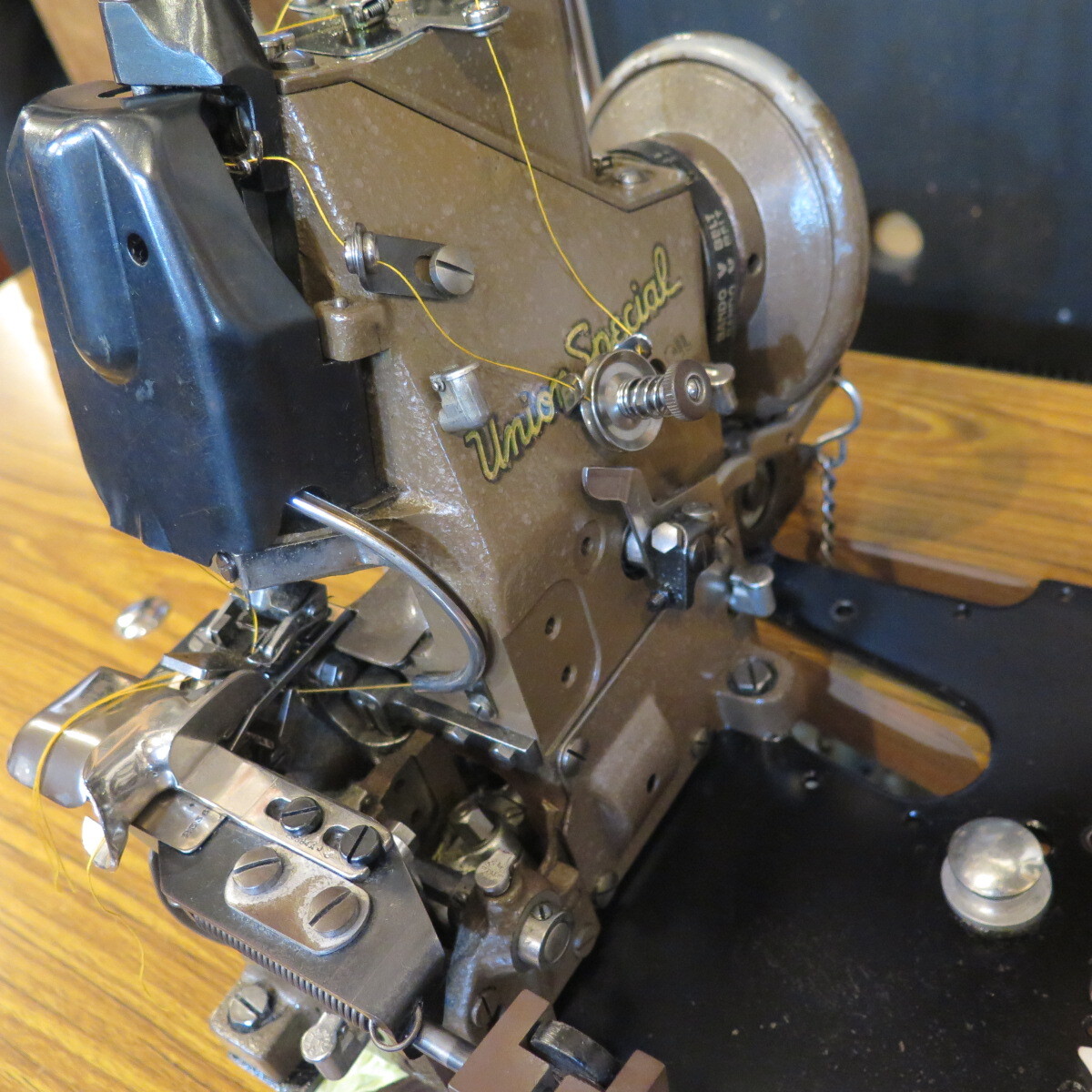 Union Special (ユニオンスペシャル) 43200Gにてチェーンステッチ綿糸で仕上げます。
