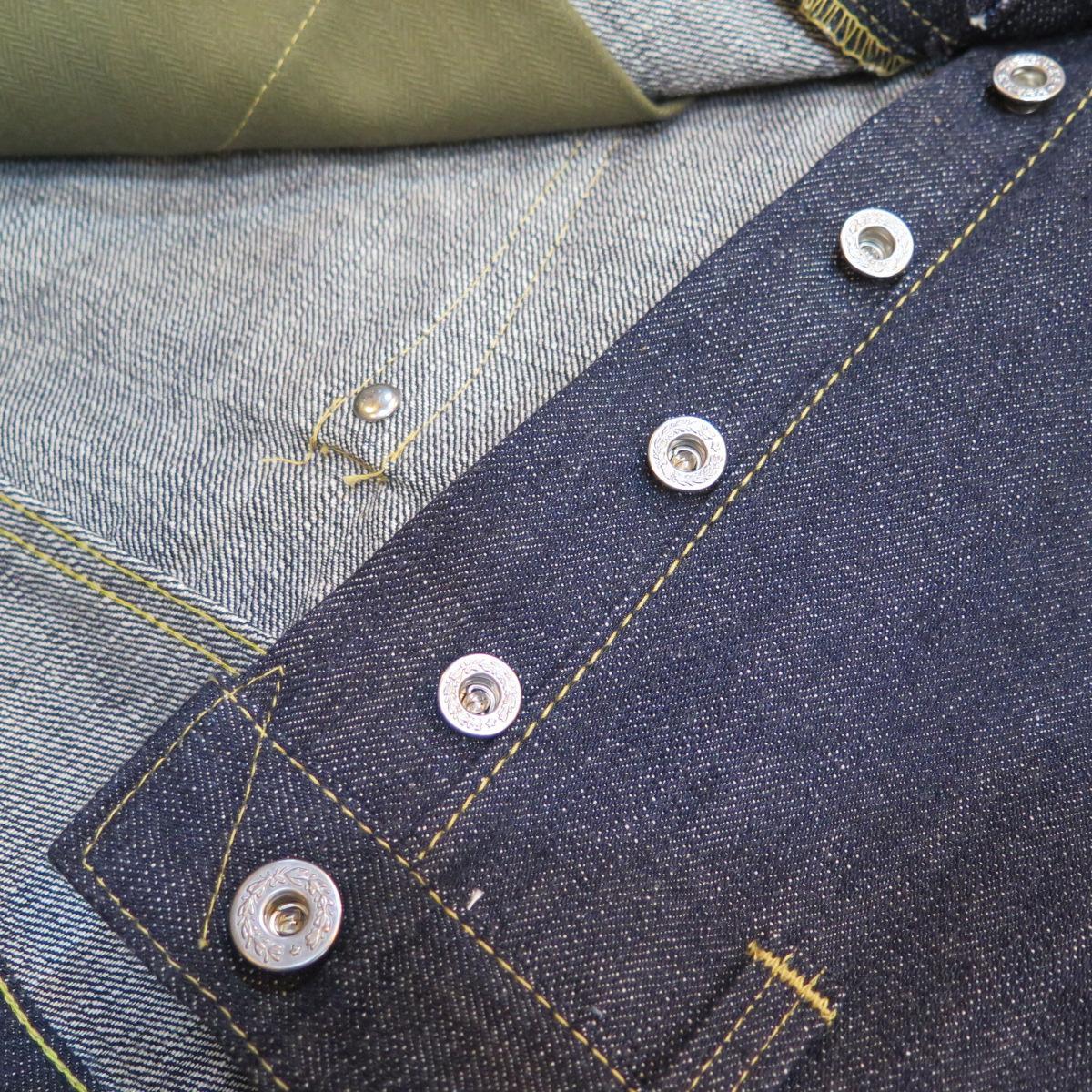生地は13.5ozセルビッチデニムで全てにおいてビンテージミシンで縫製しています。