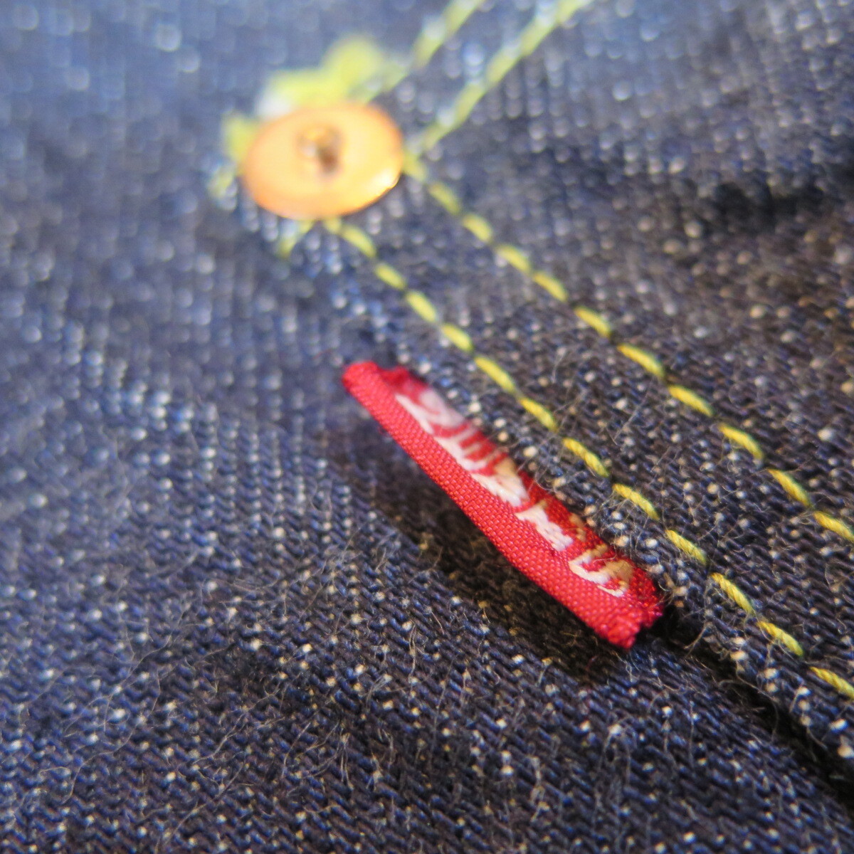 パッチ位置はダウンパッチ・食い込んで取り付けた片面赤タブは昔ながらのレーヨン100%