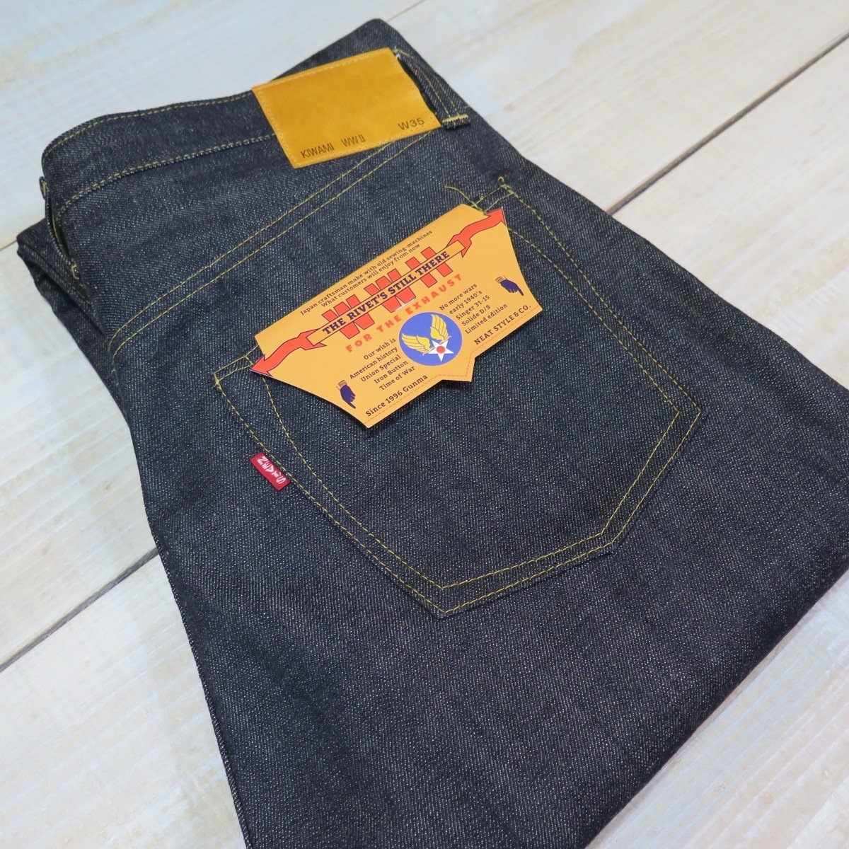 w35【KIWAMI WWII】”極み”大戦モデルストレート デニムパンツイレギュラー/両ポケ片面赤タブ日本製