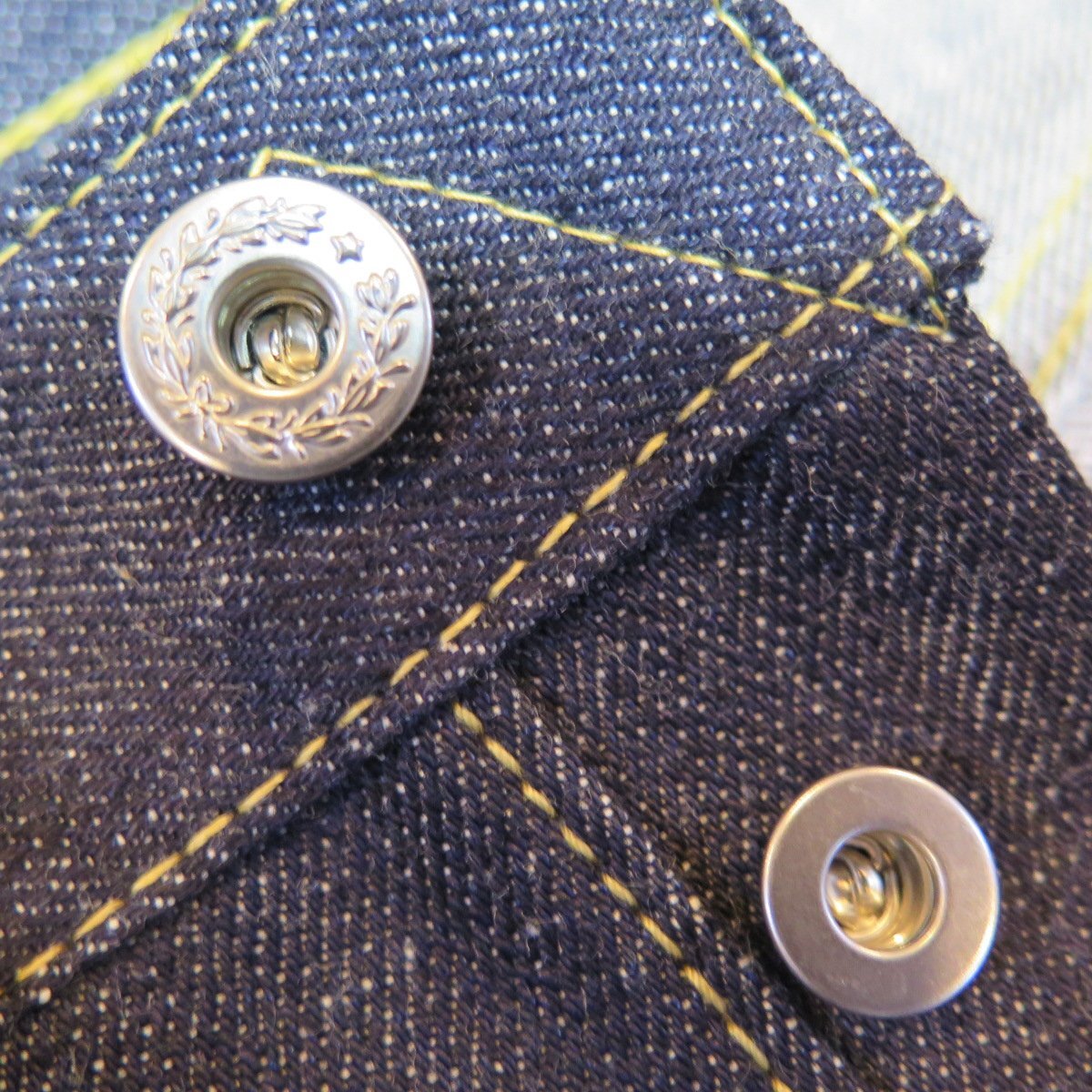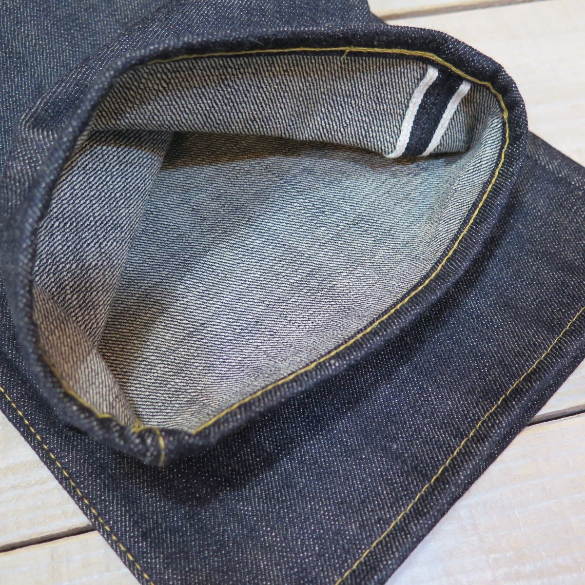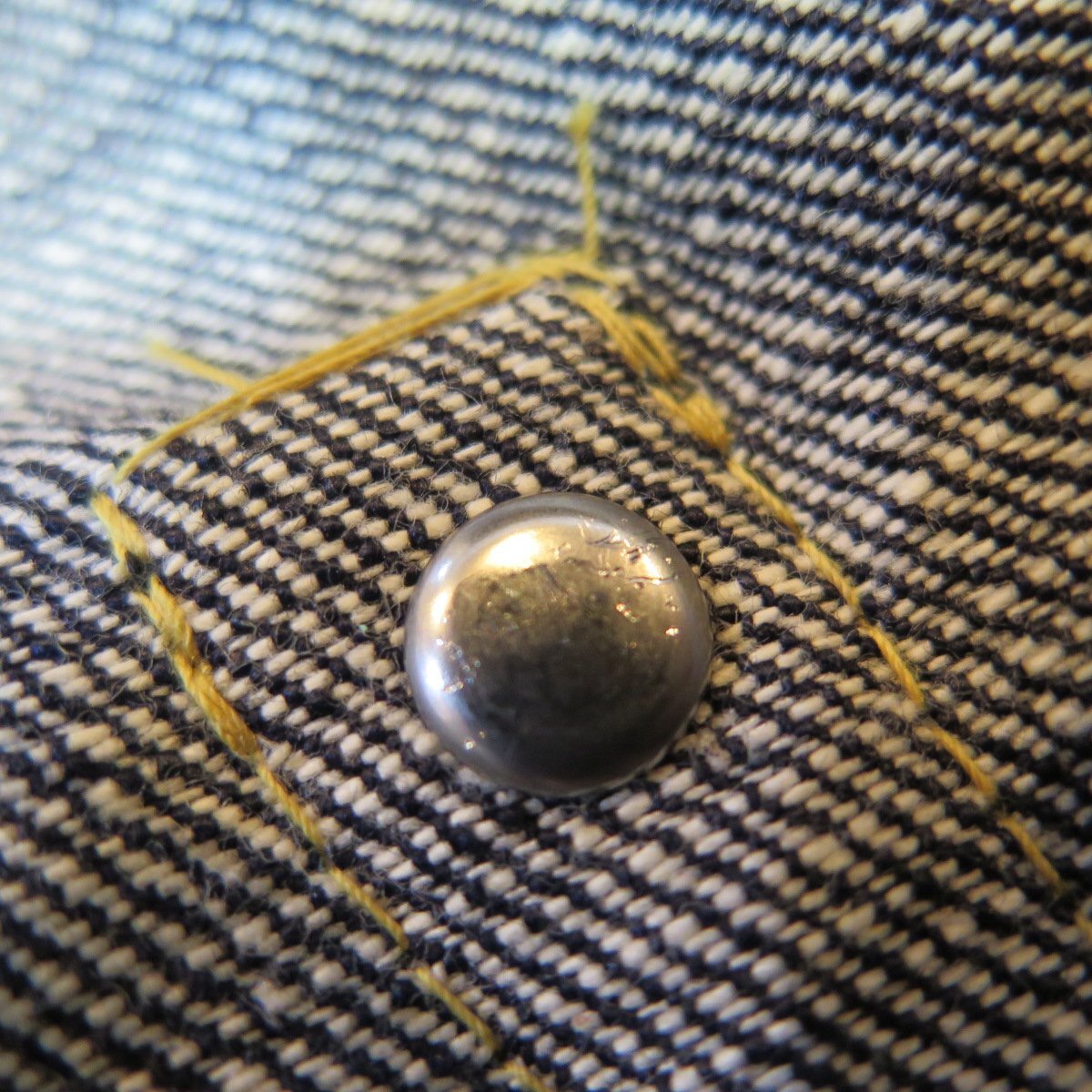 生地は13.5ozセルビッチデニムで全てにおいてビンテージミシンで縫製しています。