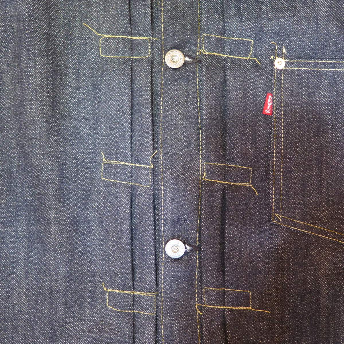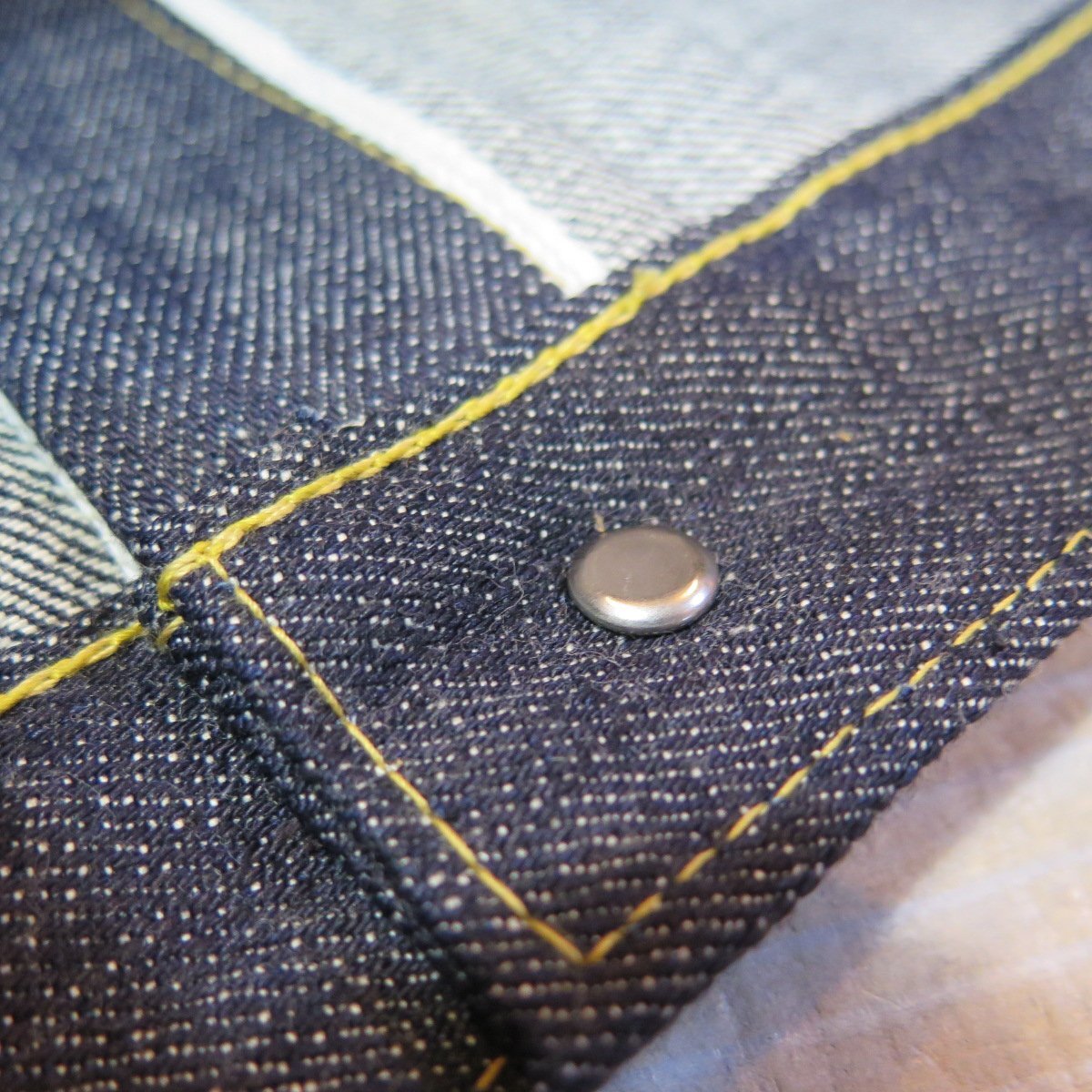 生地は13.5ozセルビッチデニムで全てにおいてビンテージミシンで縫製しています。