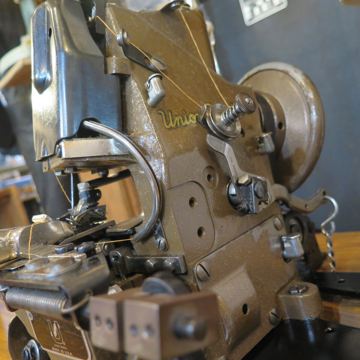 当時物ユニオンスペシャル製ミシンですのでビンテージ感ある独特なアタリが生まれます。