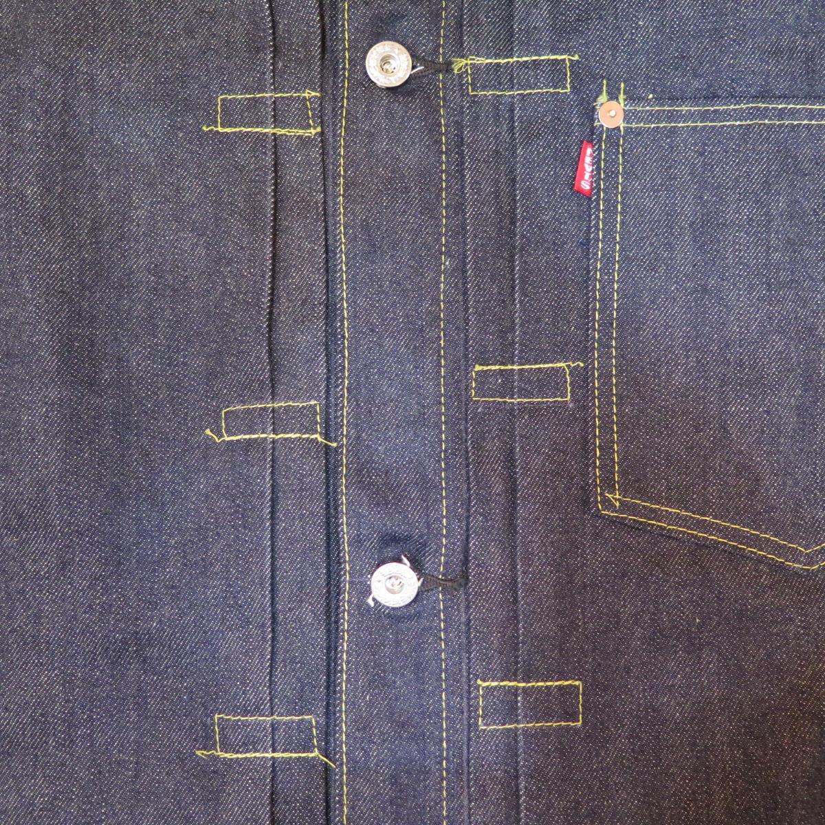 生地は30年代後期〜40年代前期のセルビッチデニムでレアな白耳。