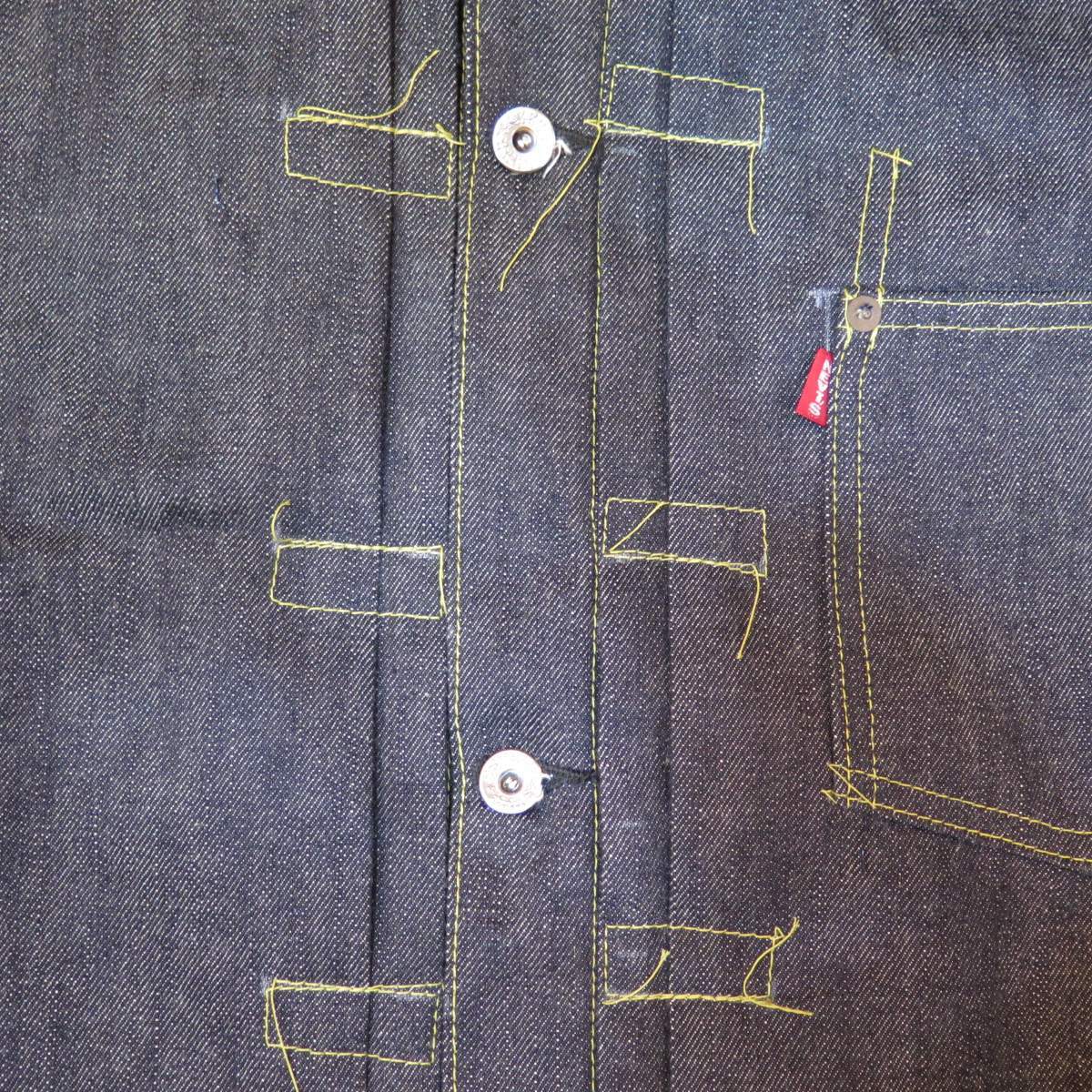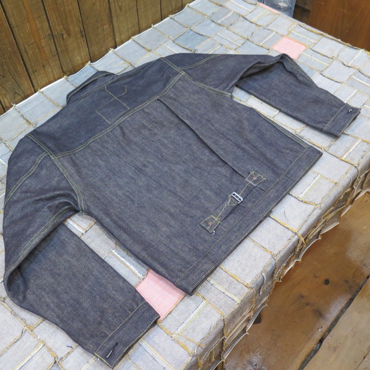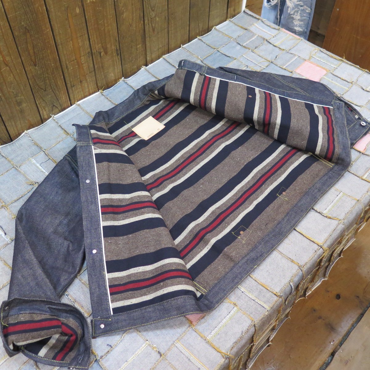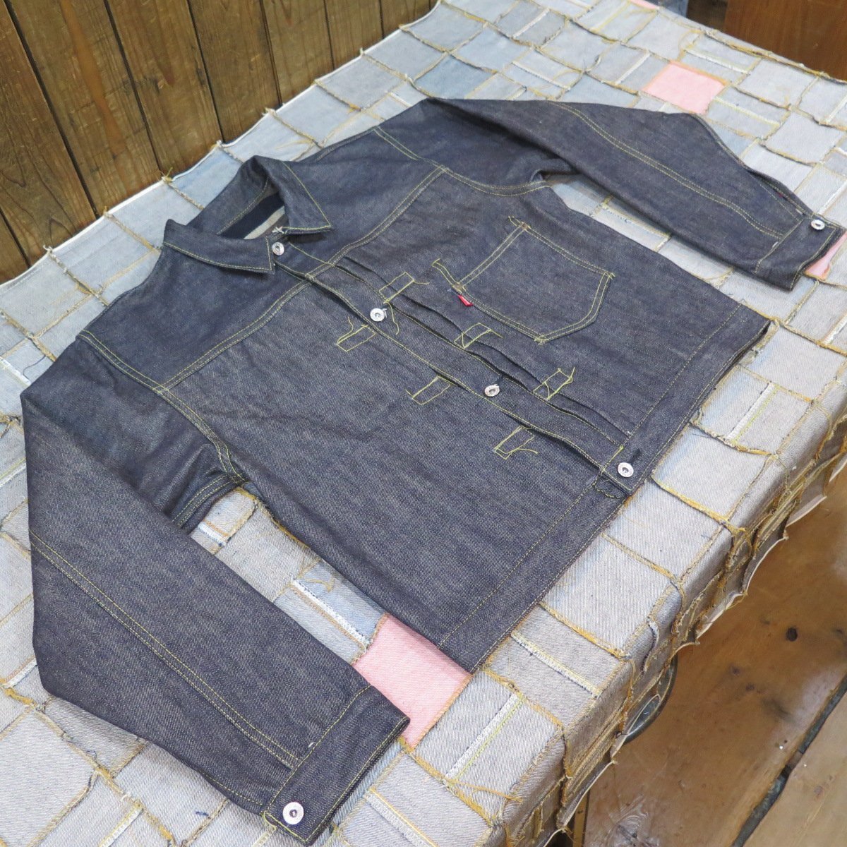 戦争下の大変な時に生まれたいわゆる大戦デニムのスーパーイレギュラーをビンテージミシンを使い再現+裏地付き。