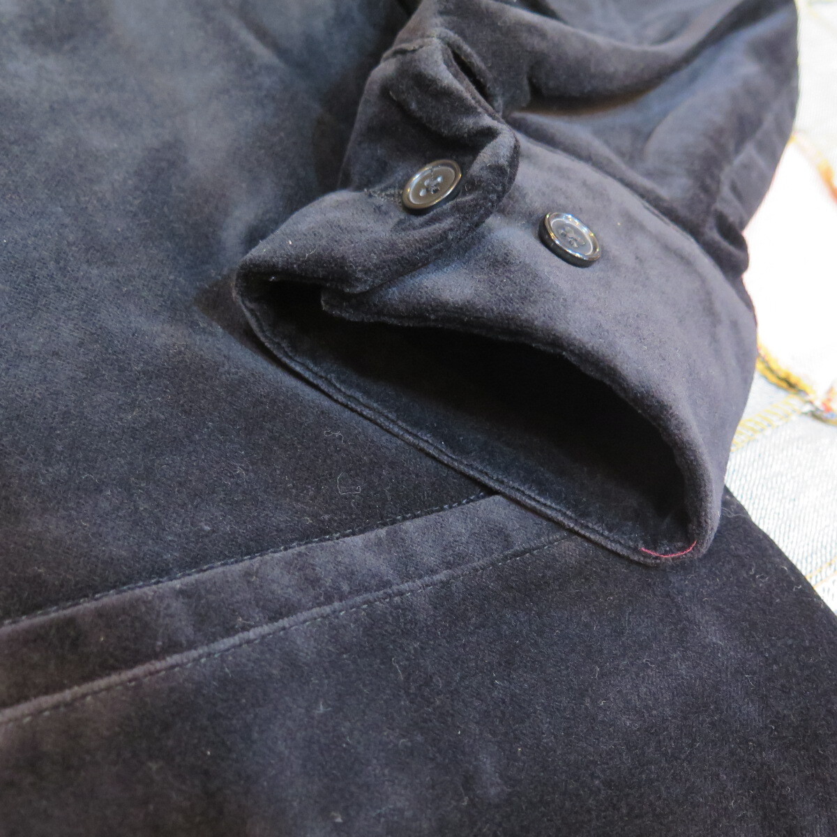 表地にはコットン別珍生地、裏地にはポリエステルサテン生地を使用。
