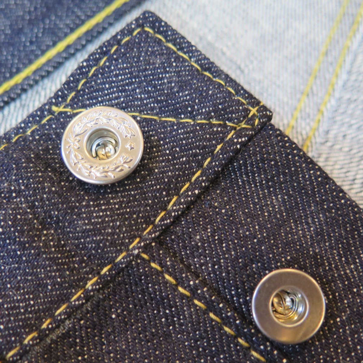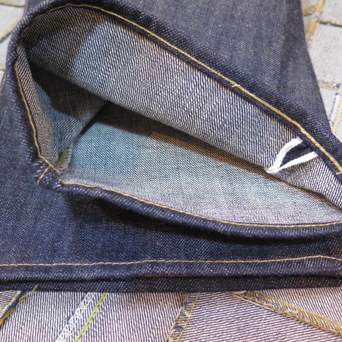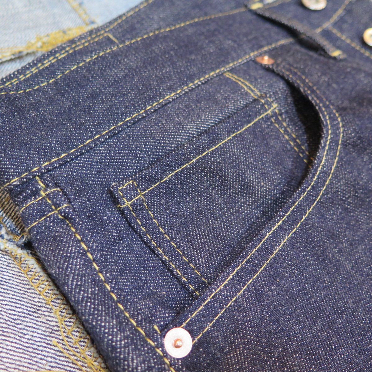 生地は13.5ozセルビッチデニムで全てにおいてビンテージミシンで縫製しています。