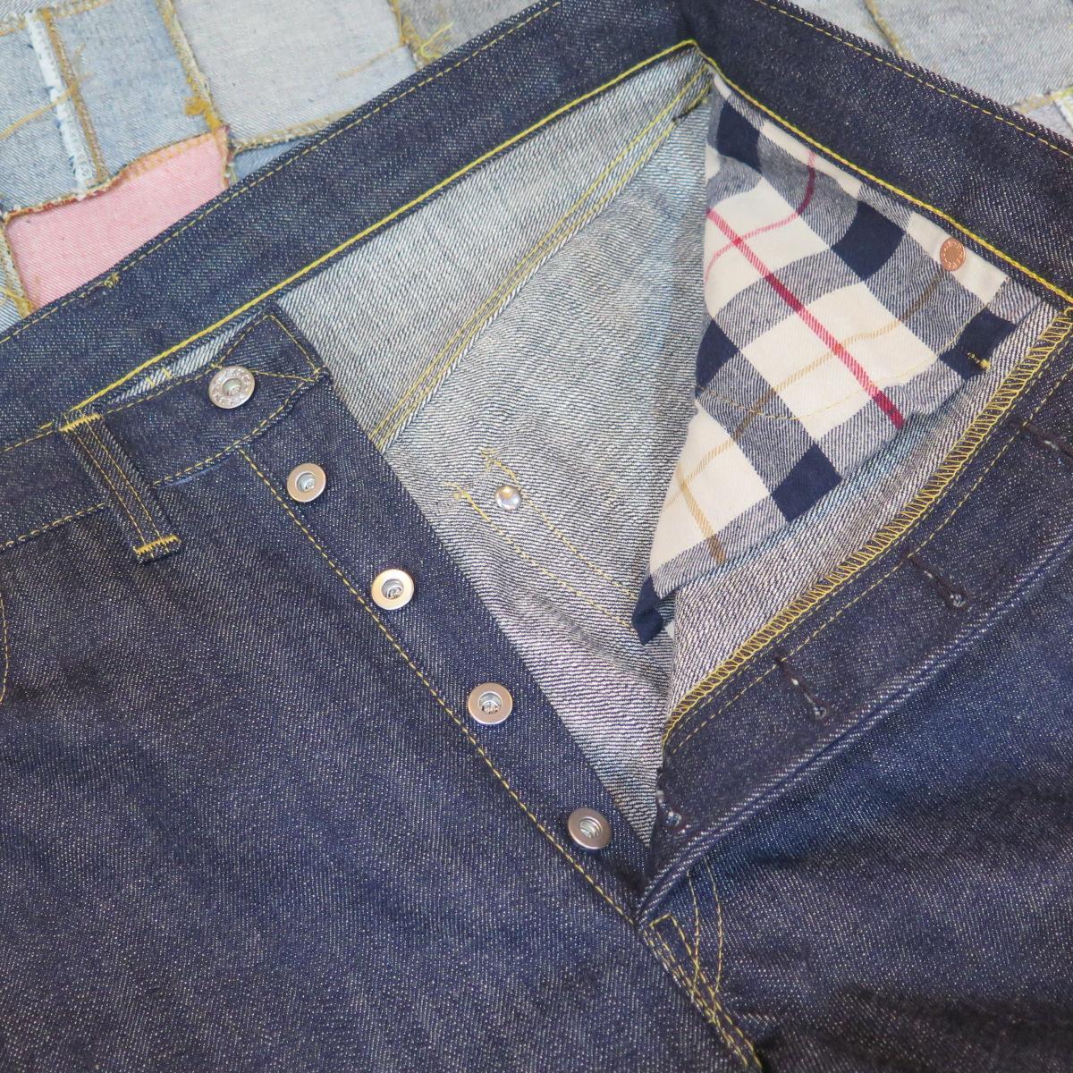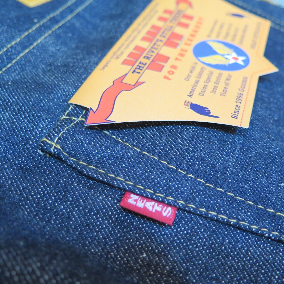 レザーパッチ・片面赤タブ・各所当時同様の切りっぱなし縫製・ポケット裏耳無し
