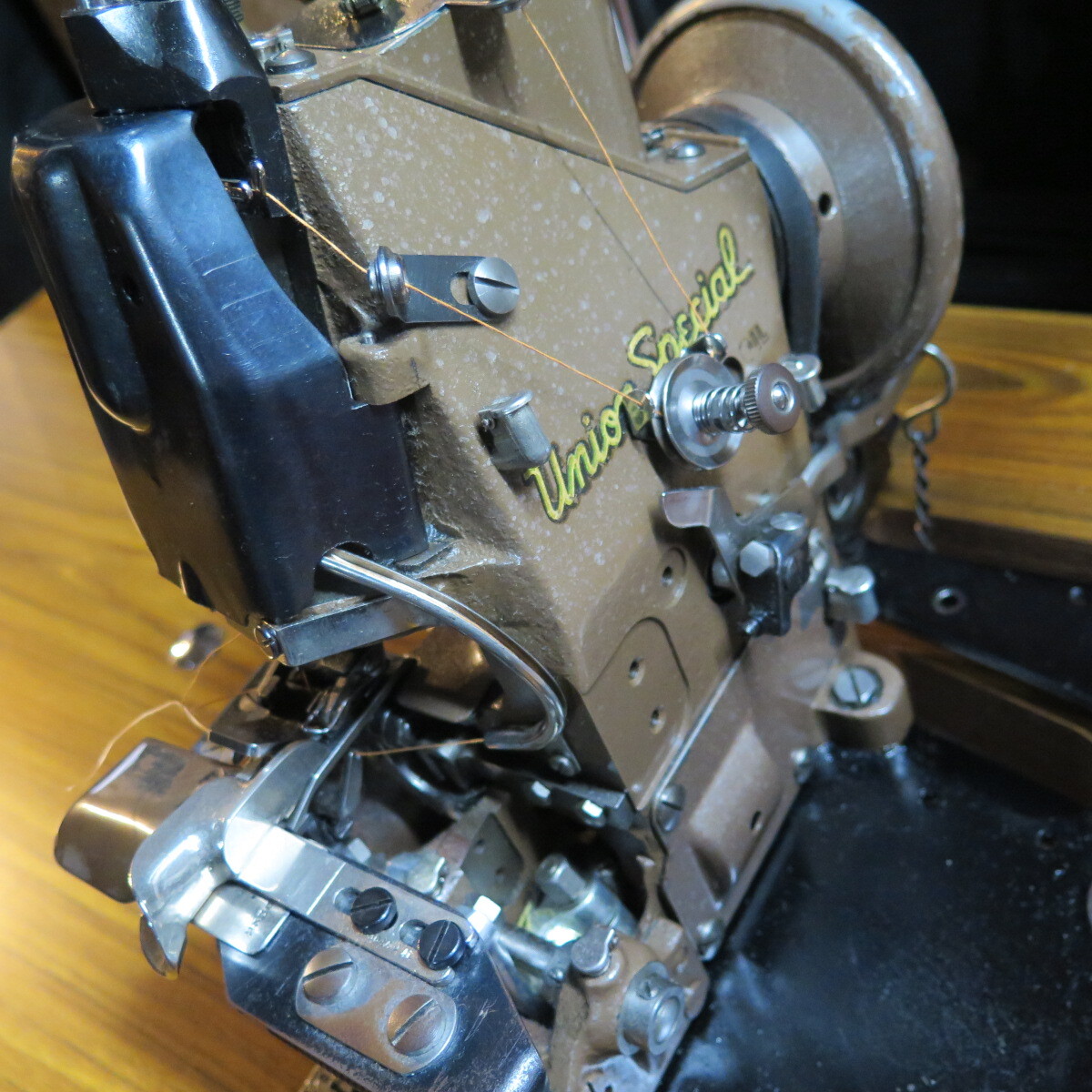 当時物ユニオンスペシャル製ミシンですのでビンテージ感ある独特なアタリが生まれます。