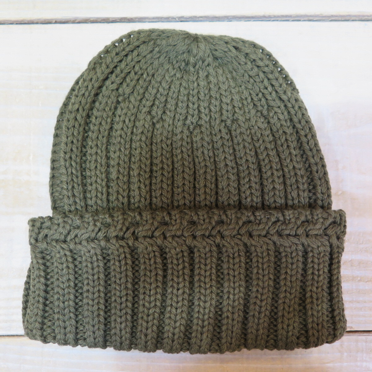 着用時の締め付けと頭部の深さ、折返し幅、頭頂部の絞り位置を追求したローゲージニットキャップ。