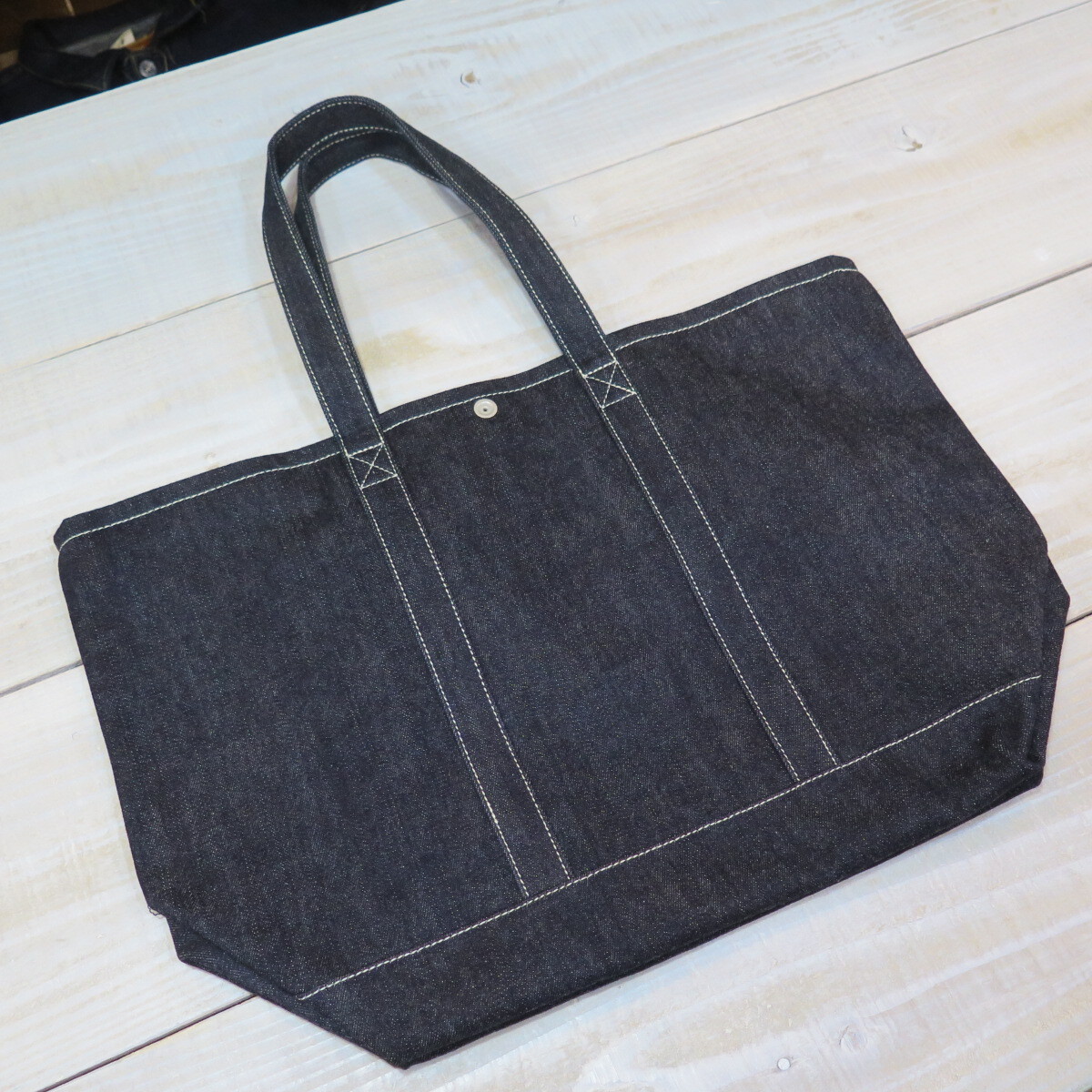 18ozデニム生地を使用した大容量のデニムトートバッグ。