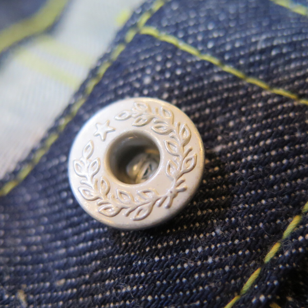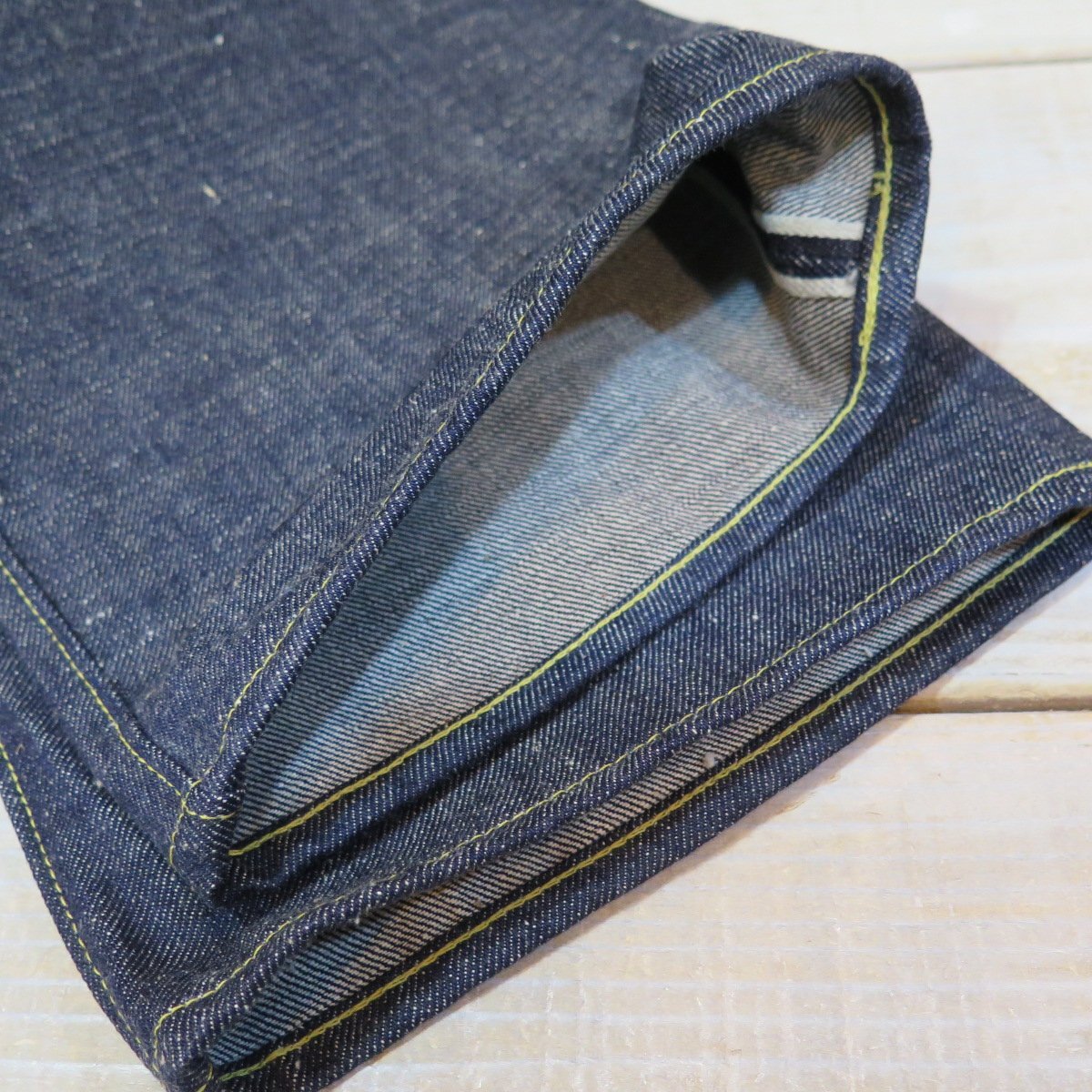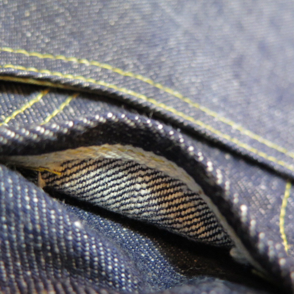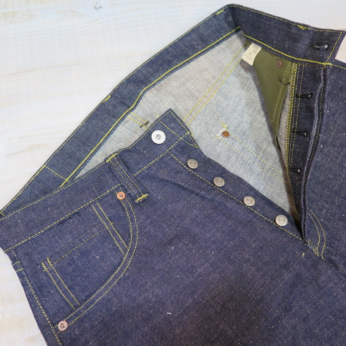 糸は経に6番のムラ糸、染めは当時のデニムのイメージでやや青の強い深みのあるインディゴに染め上げています。