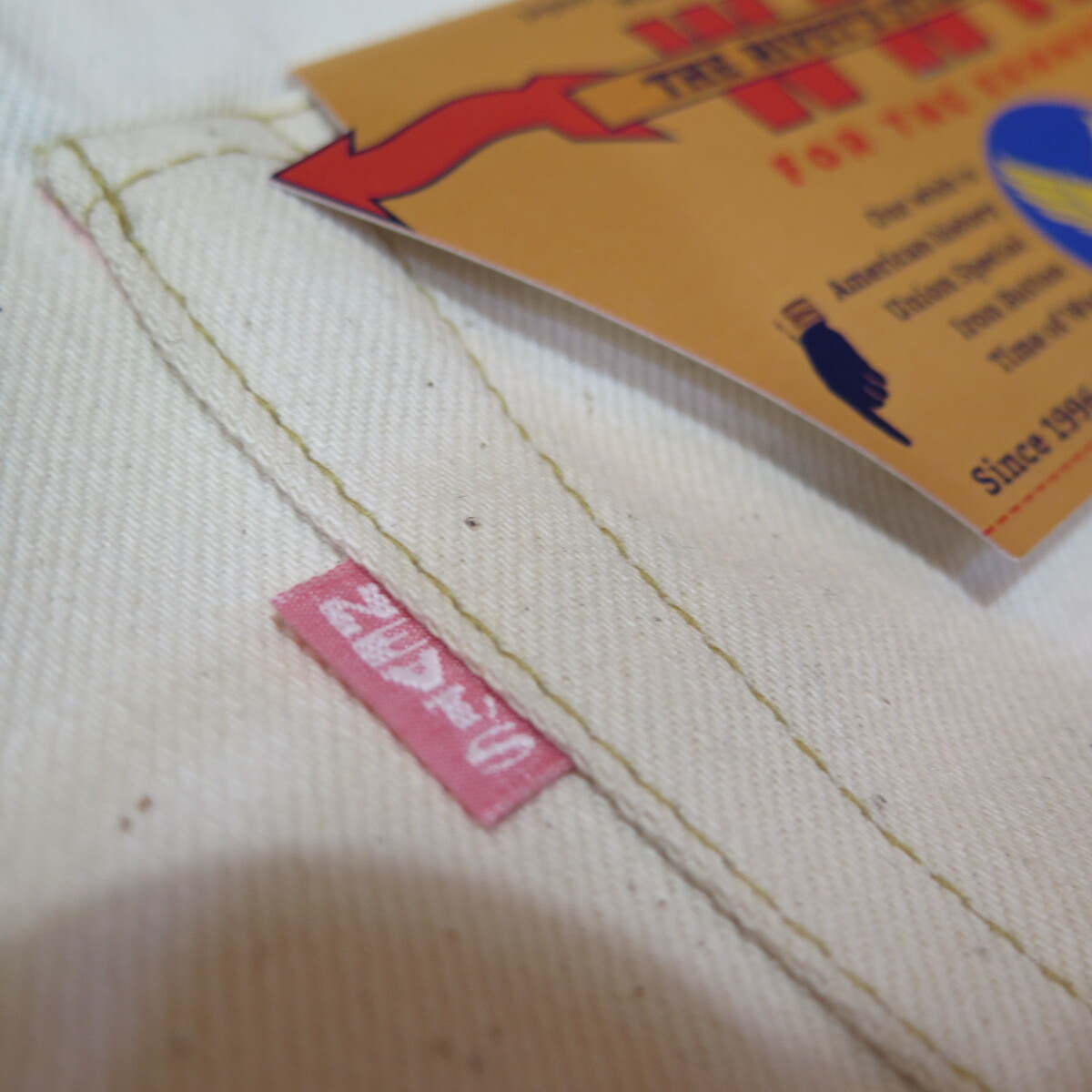 12オンスの生機ナチュラルセルビッチデニムで全てにおいてビンテージミシンで縫製しています。