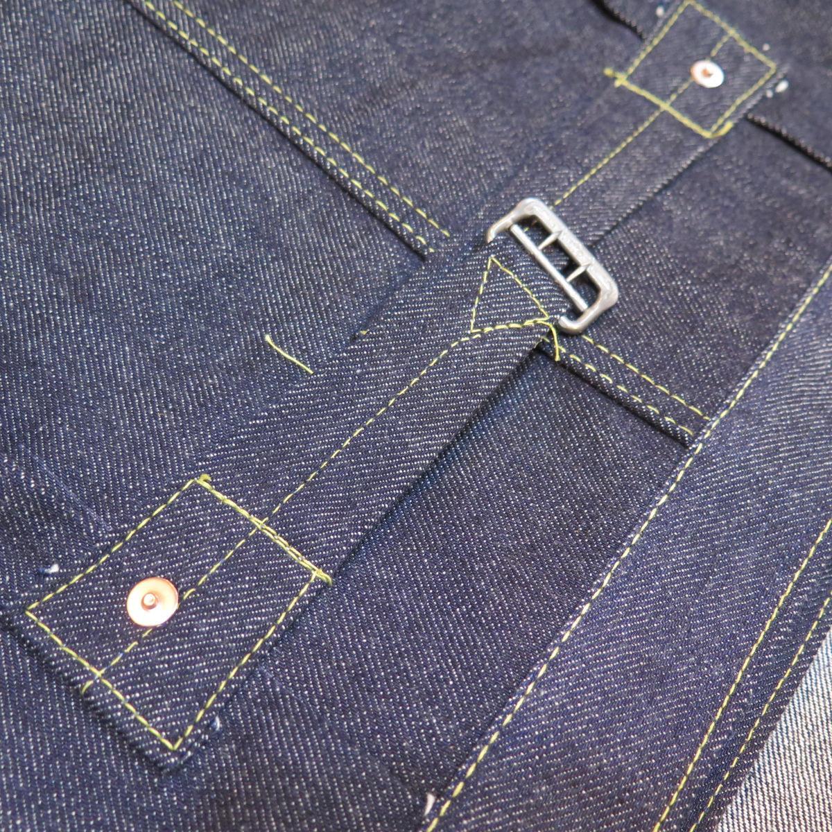 スプリットバック・2枚袖・ウールライニング・鉄月桂樹ボタン&打痕跡ツープロング・鉄銅メッキ凹み無地リベット・鉄ユリバックル