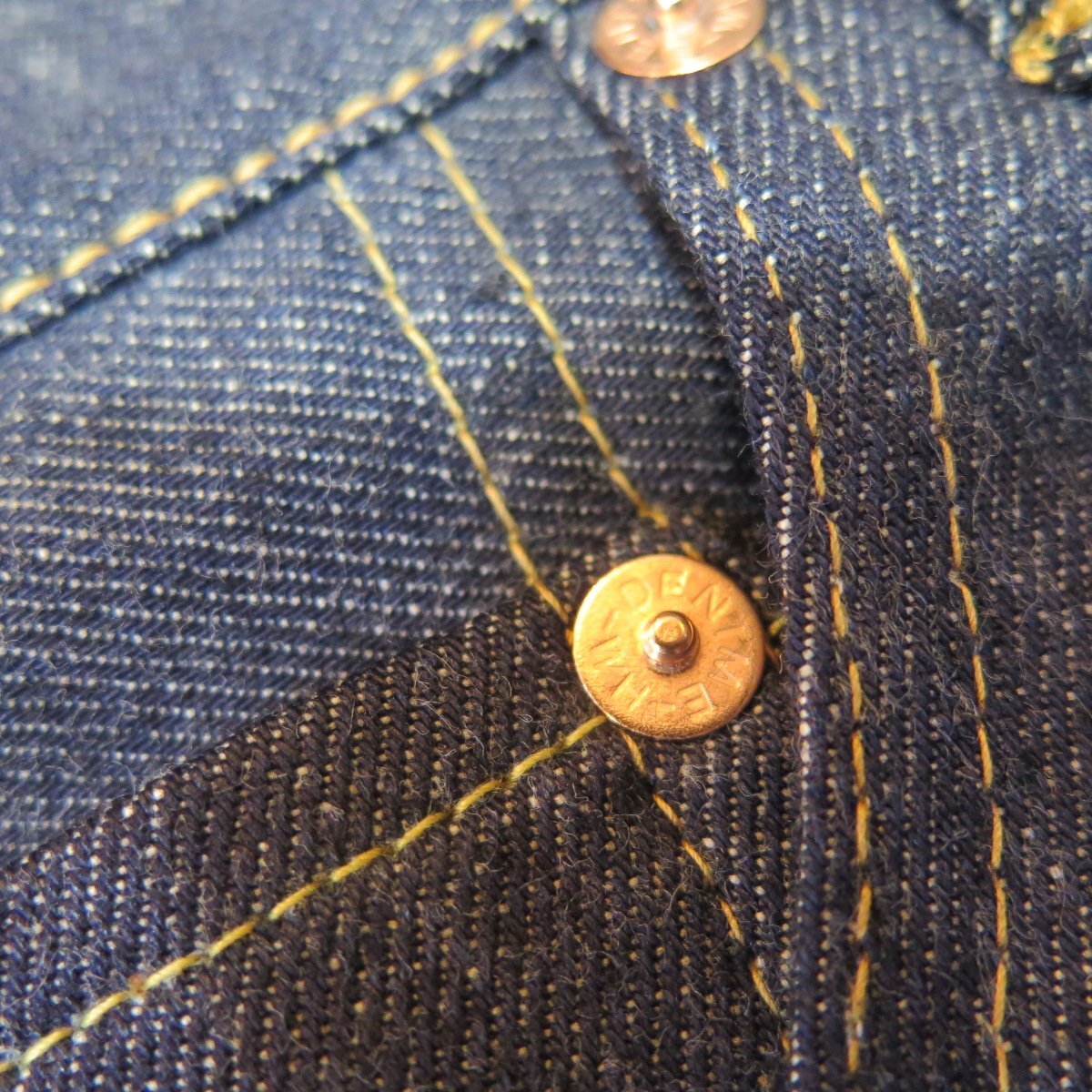 生地は茶綿混セルビッチデニムを使用しています。