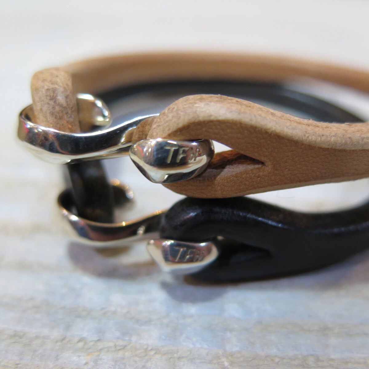 留め具にはブランドネームの頭文字「TFH」が刻印されたシルバー925のS字フックを使用。