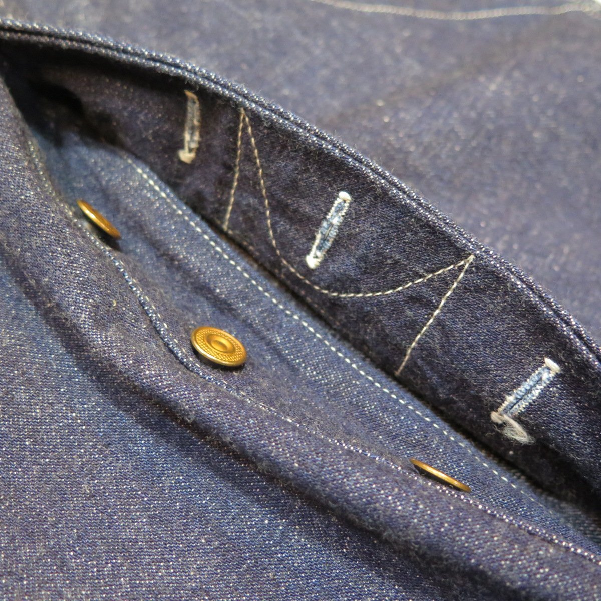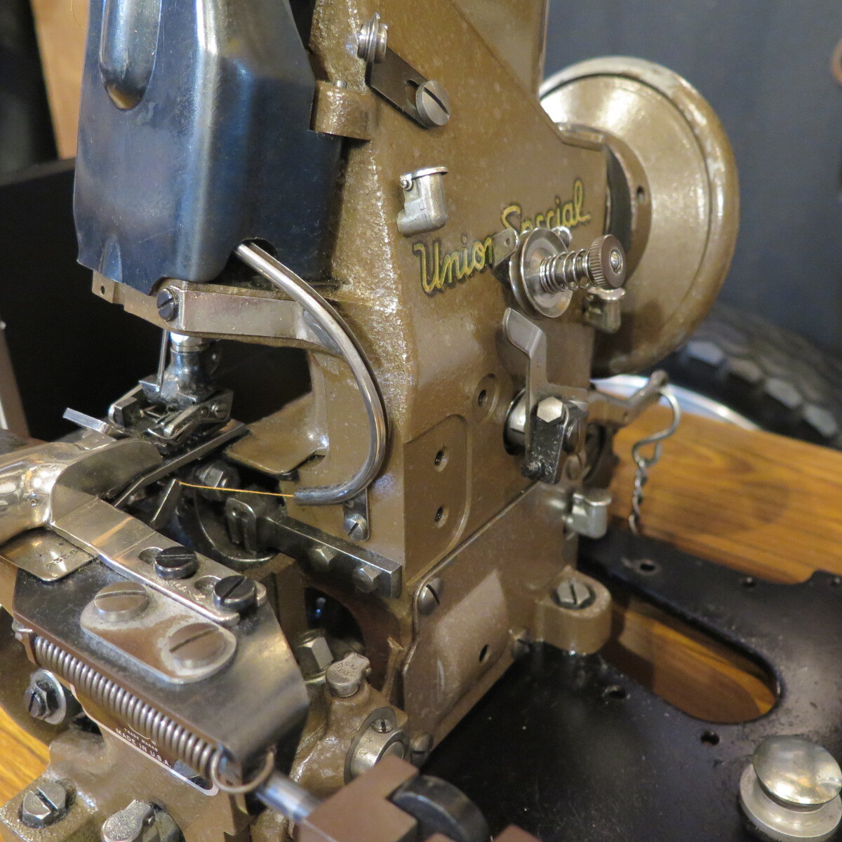 当時物ユニオンスペシャル製ミシンですのでビンテージ感ある独特なアタリが生まれます。