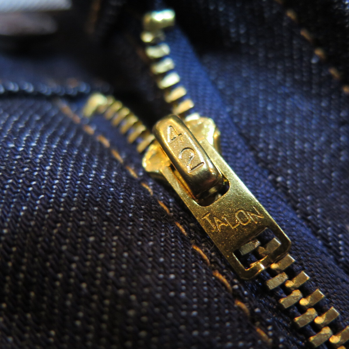 42タロンジッパー・両面赤タブ・コッパーボタン・刻印入りリベット
