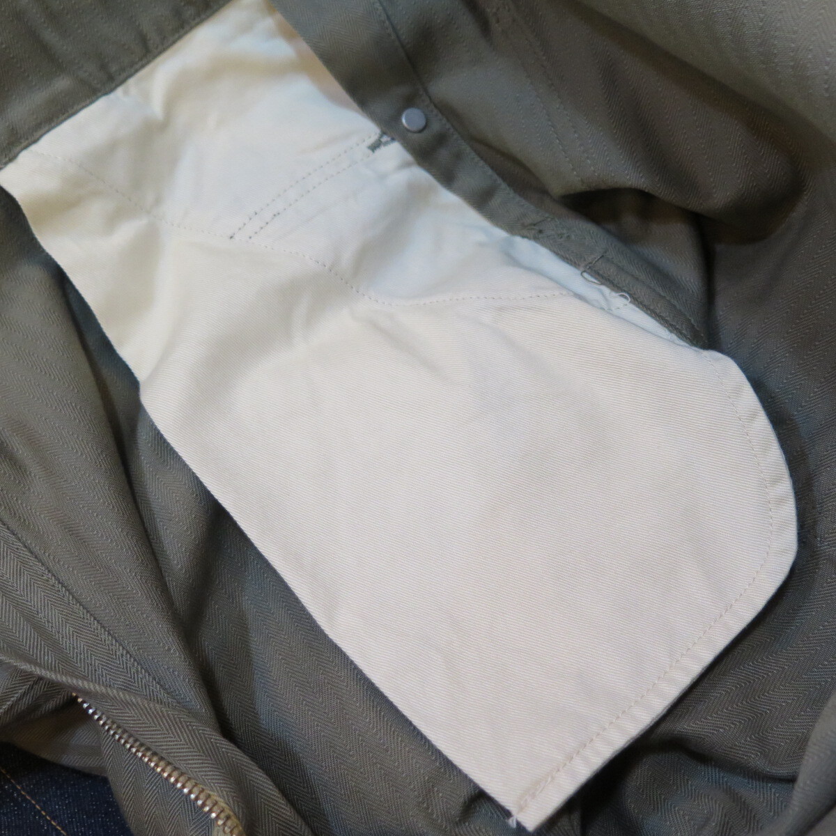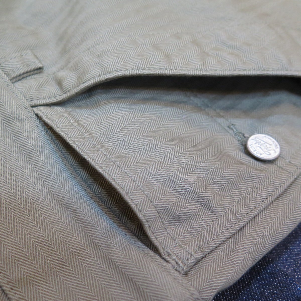 生地はオリジナルのミリタリーヘリンボーンで製作。