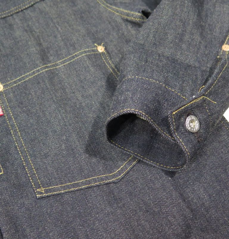 当時同様に短め着丈・月桂樹ボタン・1枚袖・乱れた縫製・ダウンパッチ・片面赤タブ